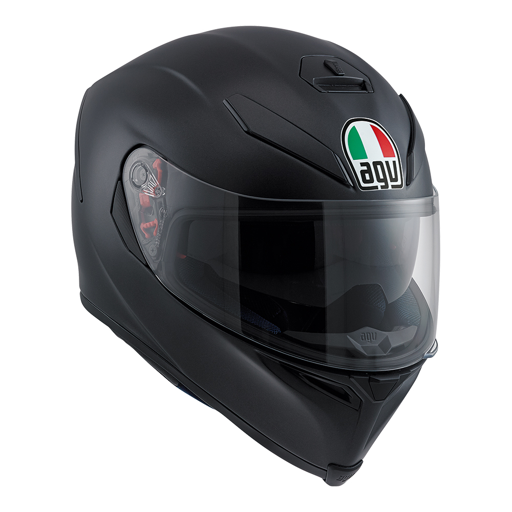 AGV’s latest version of this premium sport helmet now features a new construction for the inner liner, designed with high-performance fabrics and with no stitching in sensitive areas, making for an extremely comfortable fit. The lightweight shell is made from a carbon-fiberglass mix, while stability and aerodynamic performance are maximized thanks to an incorporated spoiler. The Integrated Ventilation System (IVS) has vents that are hollowed into the shell, and there’s also an internal dropdown sun visor, a removable nose guard and a new wind protector that keeps noise to a minimum.