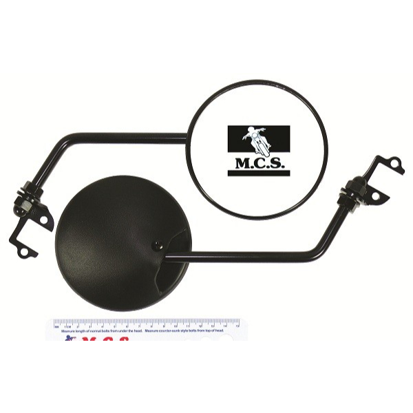 Aftermarket Replacement mirror set of two Direct replacment for original mirrors Powercoated metal stem with black plastic mirror head Does not come with mount bolts