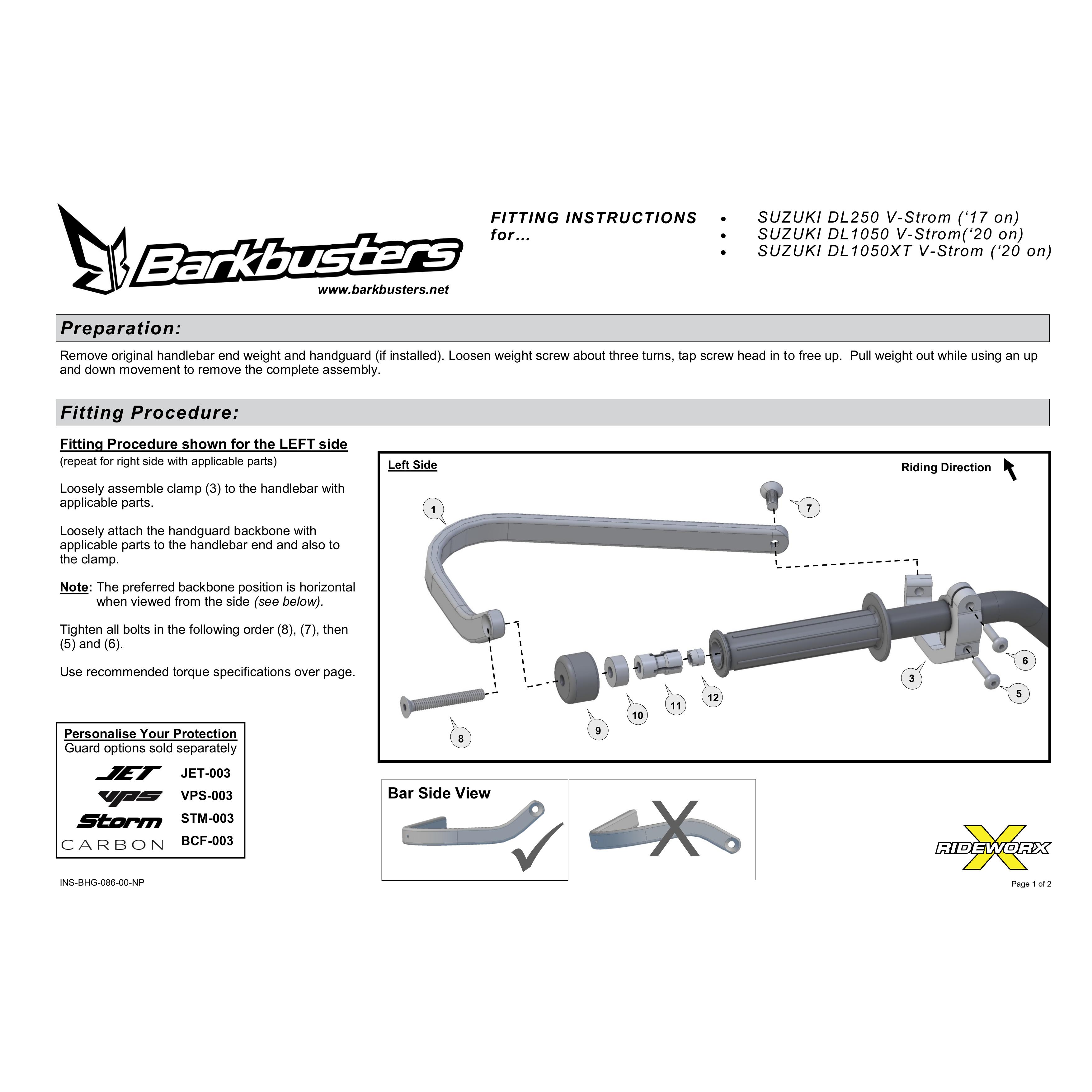 HANDGUARD HARDWARE KIT SUZ DL250,1050VS/XT '20on