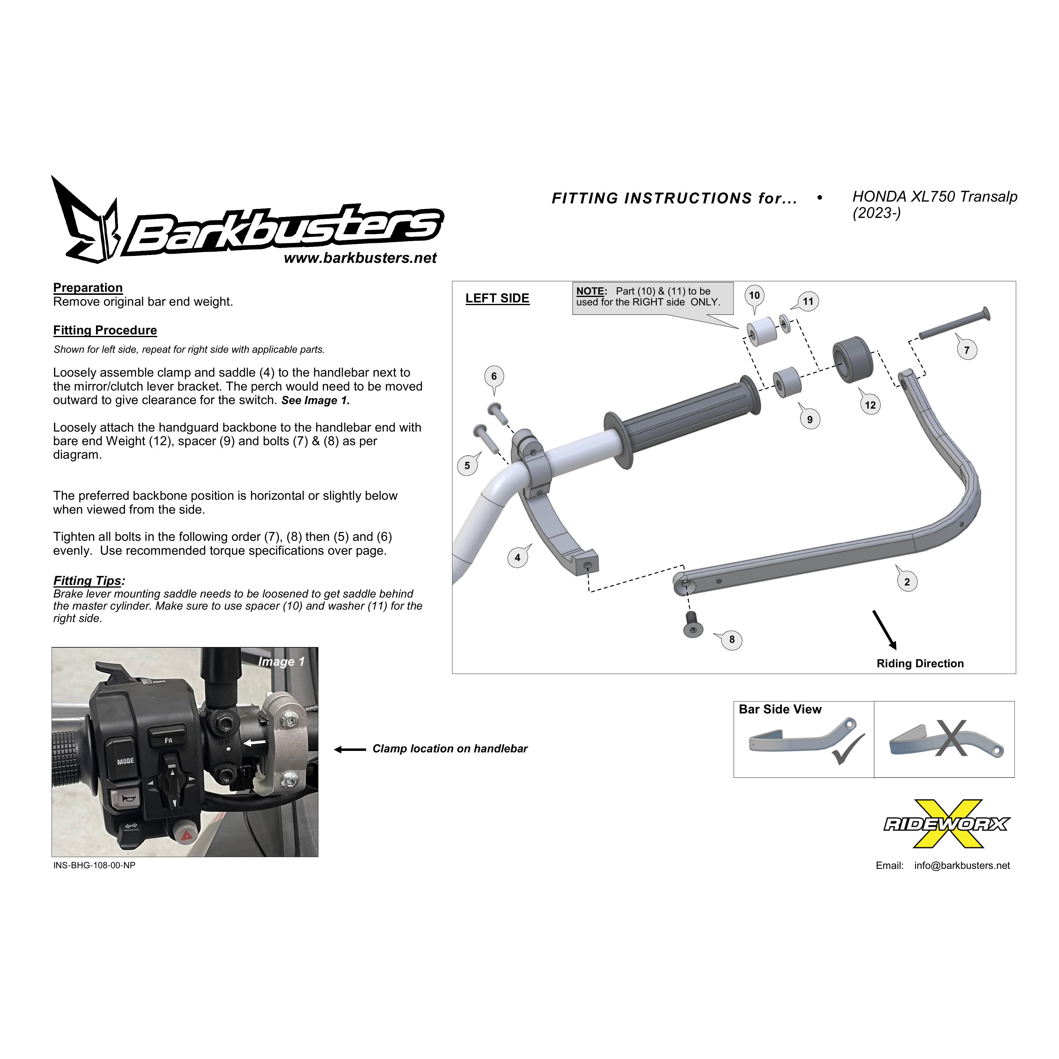 HANDGUARD HARDWARE KIT HONDA XL750 TRANSALP 23> NO PLASTICS