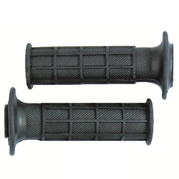 Universal full waffle (ribbed) standard off road grips Pair to fit standard 7/8" - 22.5mm off road bars and throttle tubes Closed ends Black Modelled on Honda xr600 style Hard style
