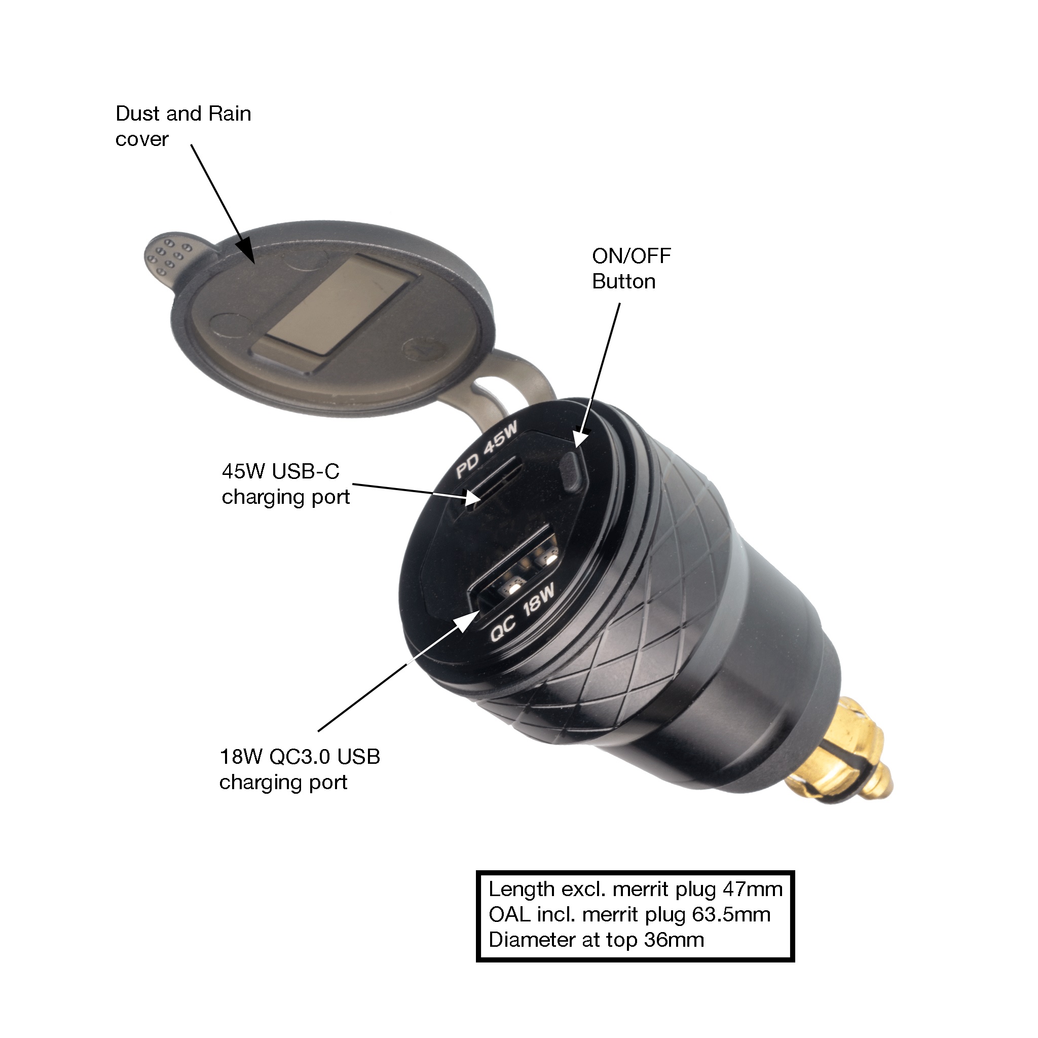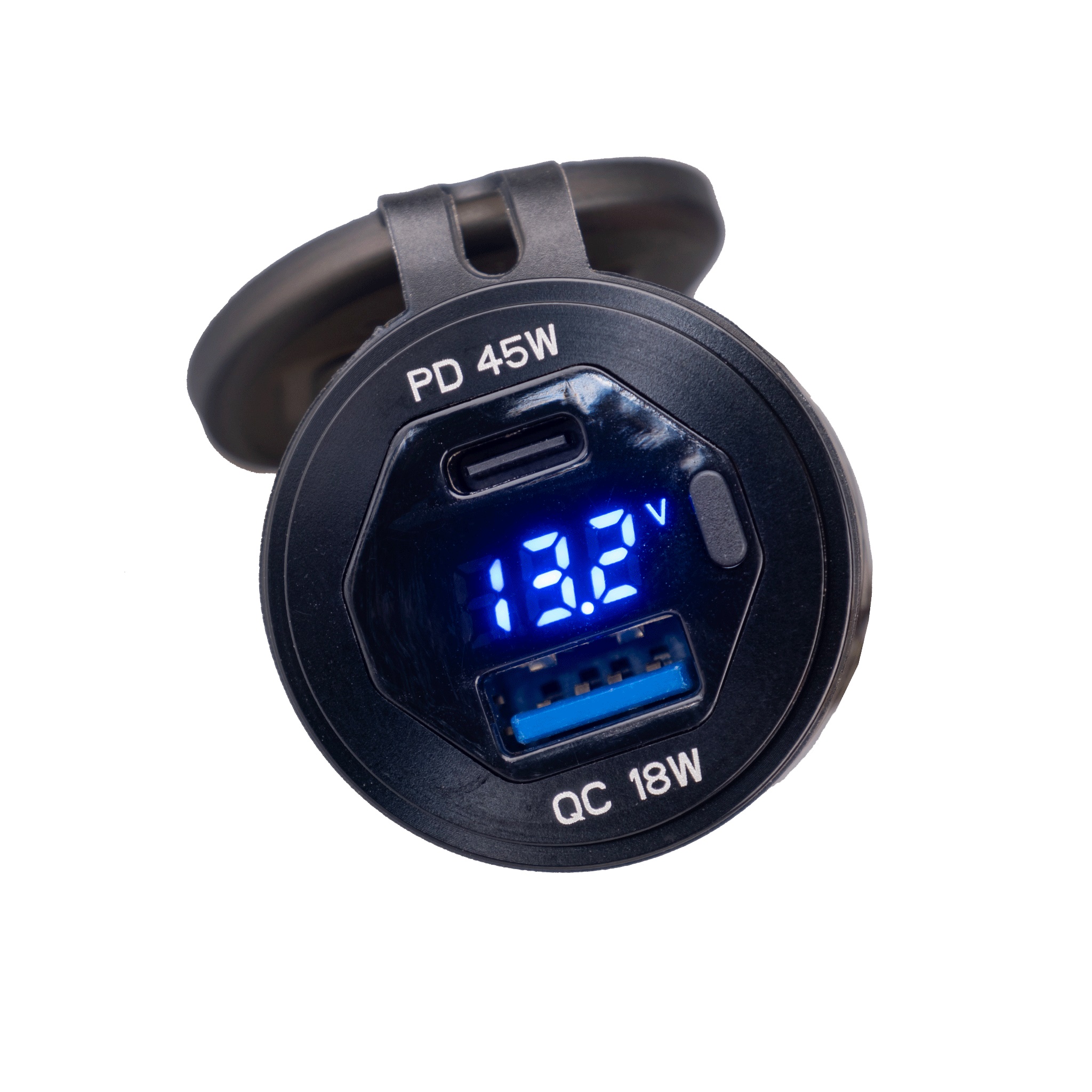ELECTRICAL DUAL ADAPTER USB-A AND USB-C W VOLTMETER & ON/OFF