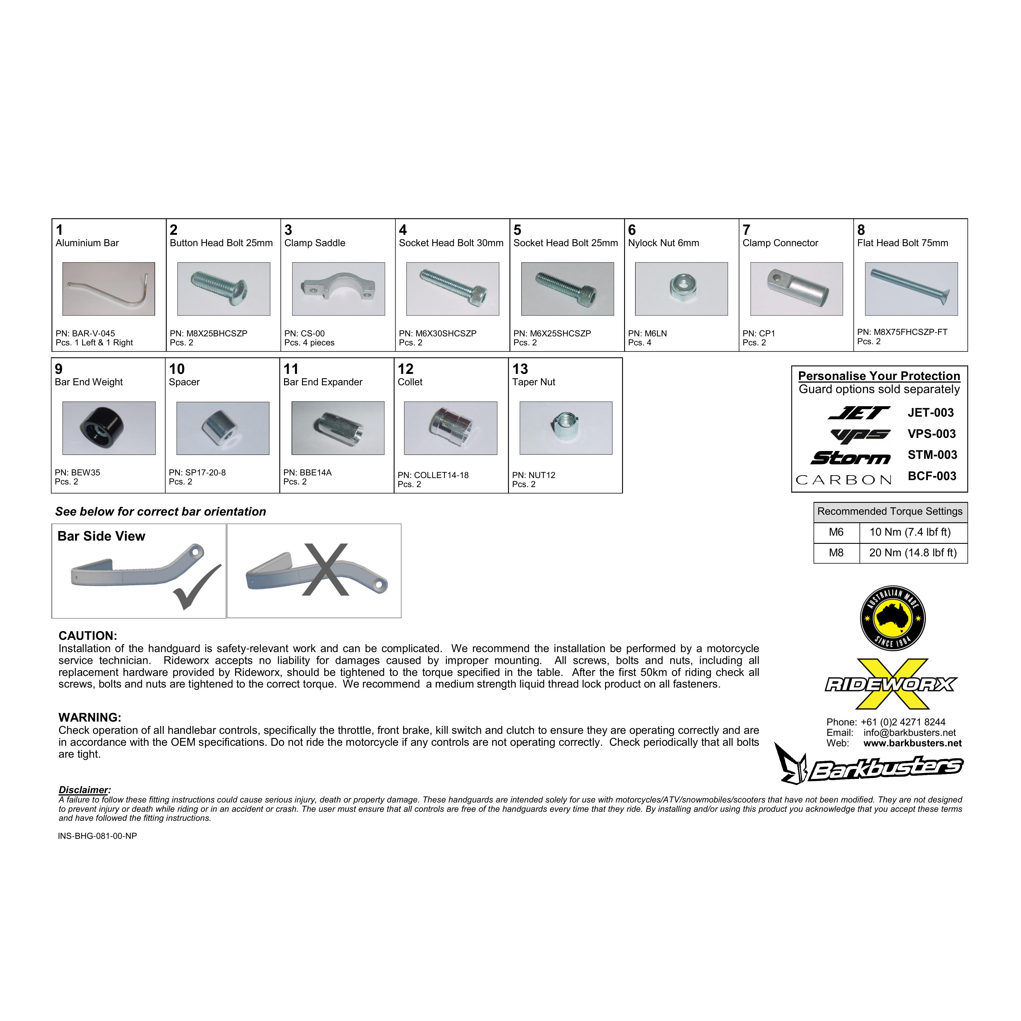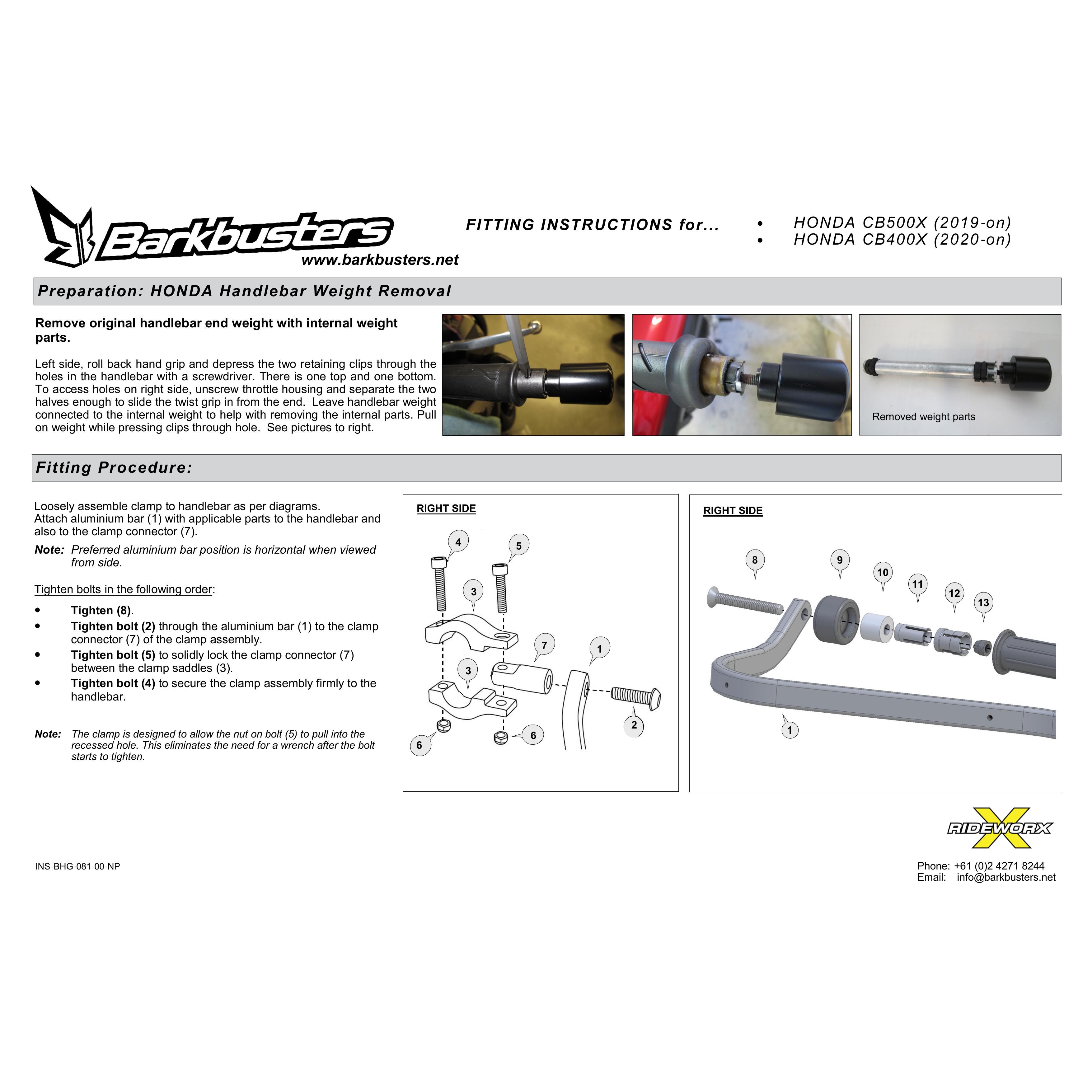 Description: USE B-BHG-123-00-NP HANDGUARD HARDWARE KIT HONDA CB500X/CB400X