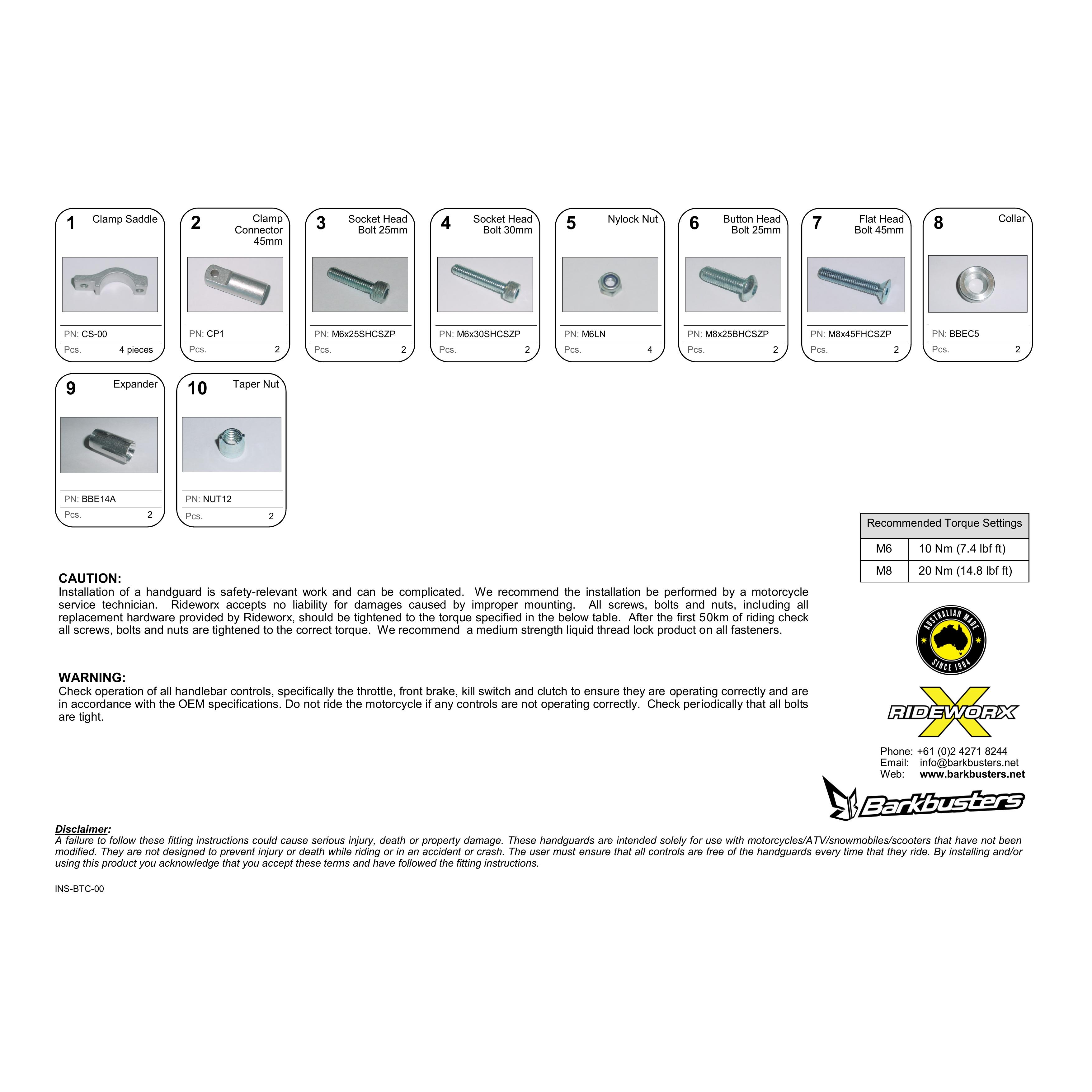 SPARE PART CLAMP KIT (22mm STRAIGHT) B-BTC-22