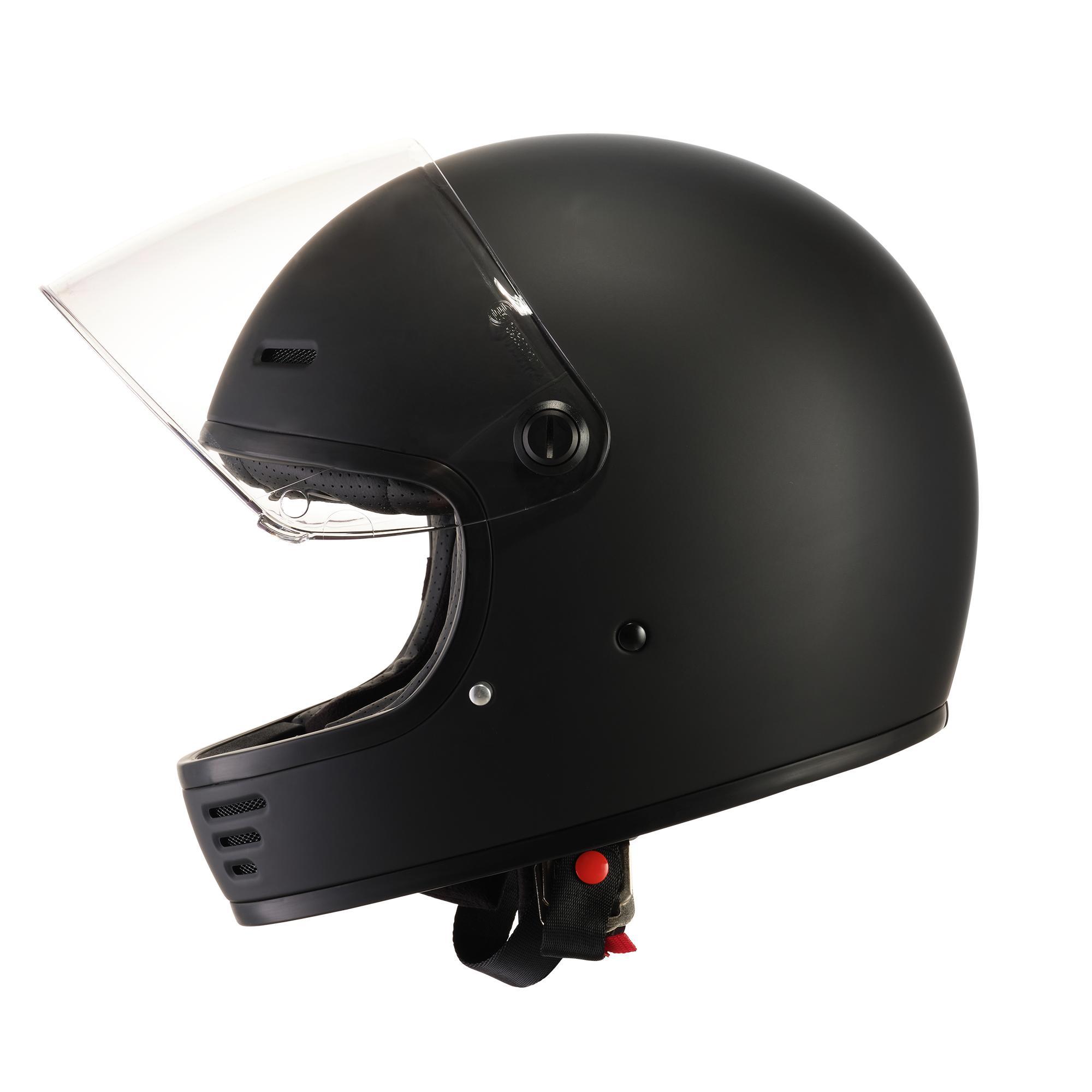 The E70 helmet is a throwback to the heyday of racing and riding without skimping on the modern conveniences. This helmet is a comfortable, safe and particularly stylish helmet that meets the demands of modern day riders who love the retro design. A full removable liner with a vintage styling, coupled with rear neck roll venting and soft touch liner make the helmet feel plush and comfortable to the touch. Exterior styling also has a distinct retro vibe with venting through the chin bar and forehead. The visor port has been sealed with a rubber seal to keep the wind and rain out.